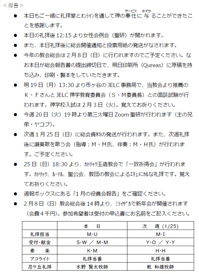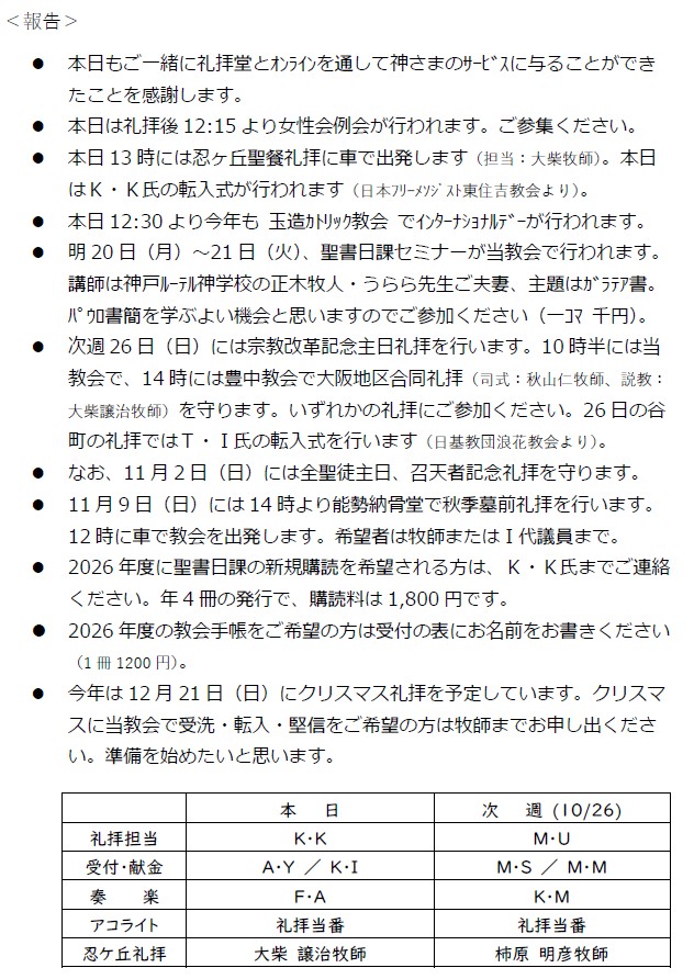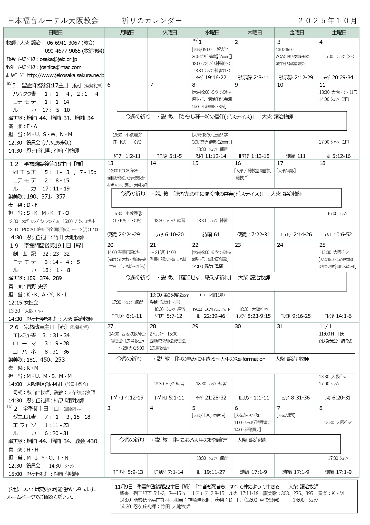 大阪教会からのお知らせ