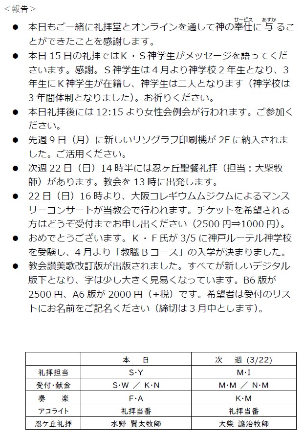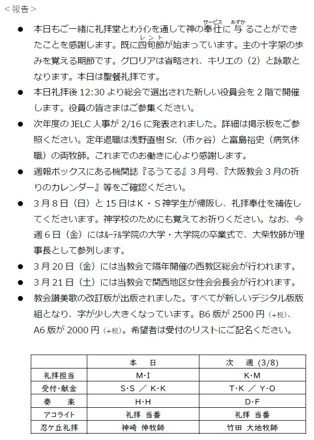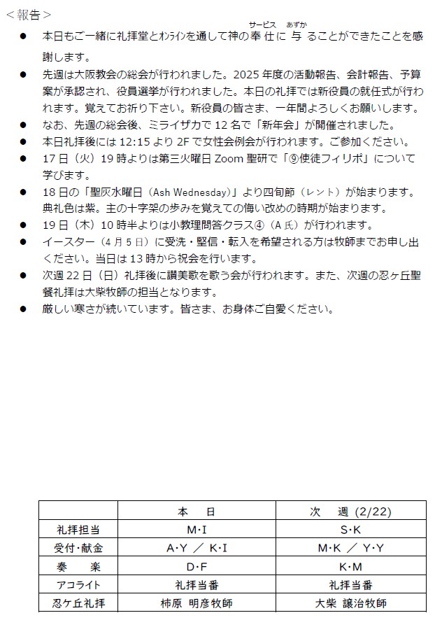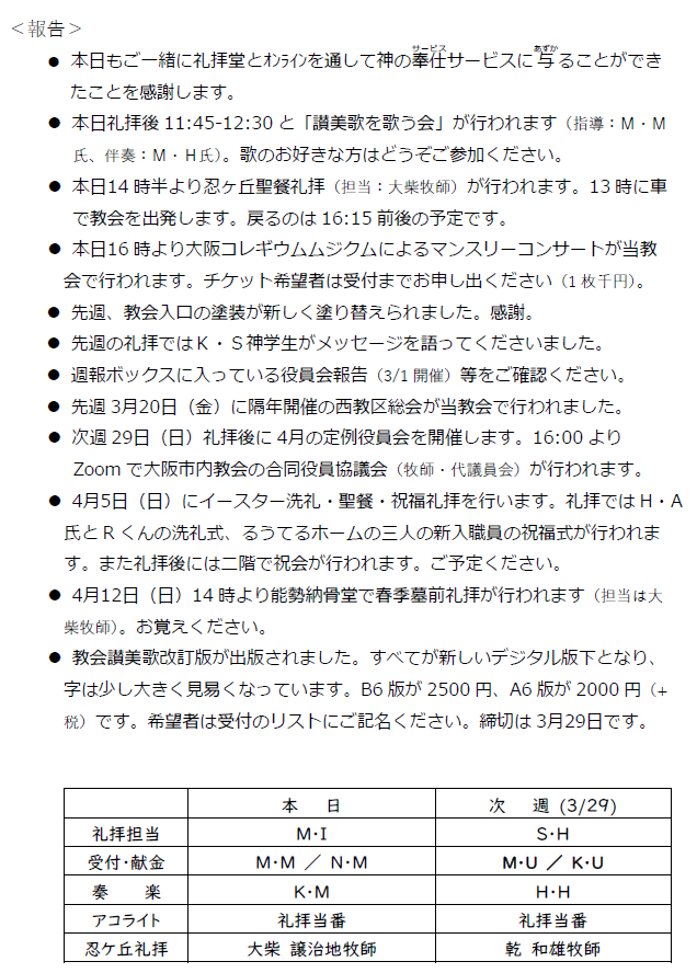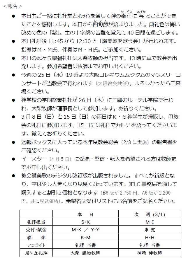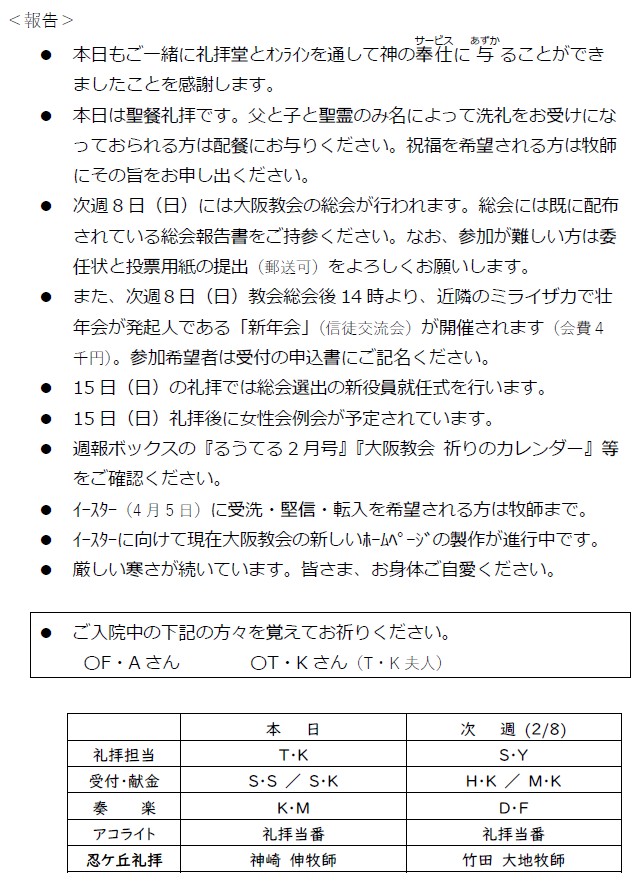 大阪教会からのお知らせ