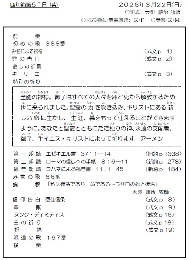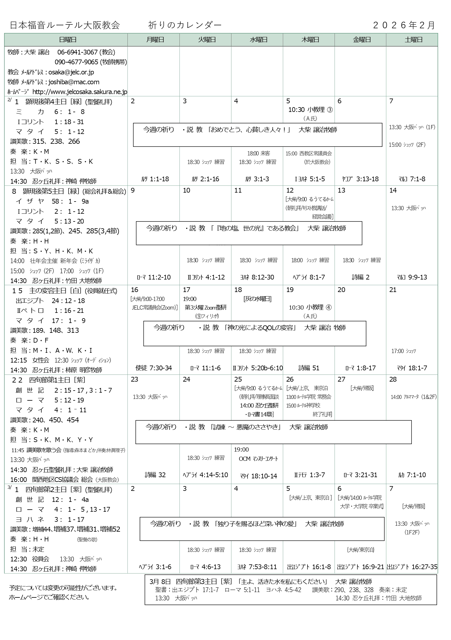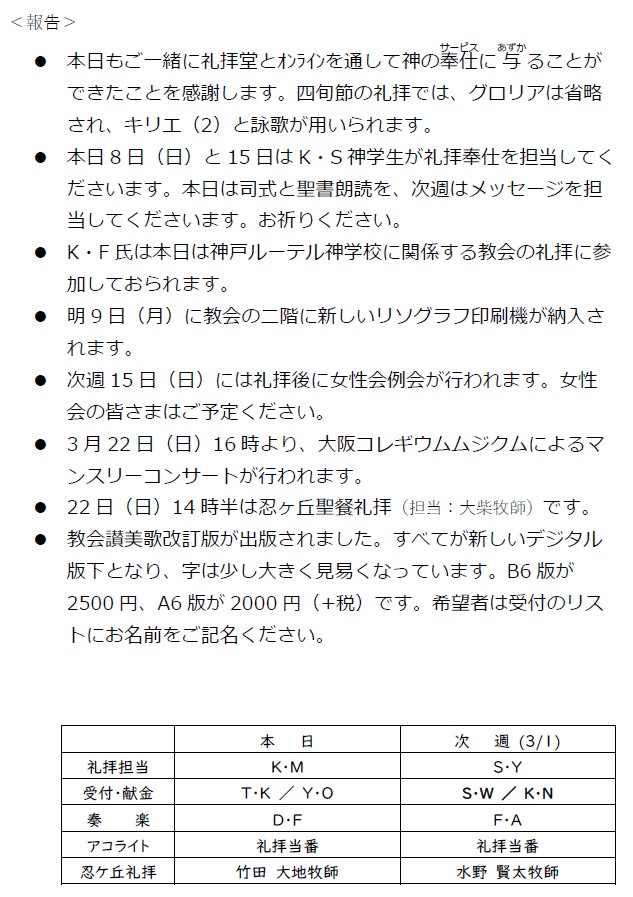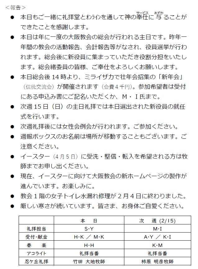大阪教会からのお知らせ