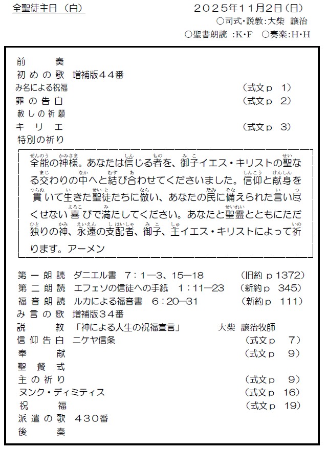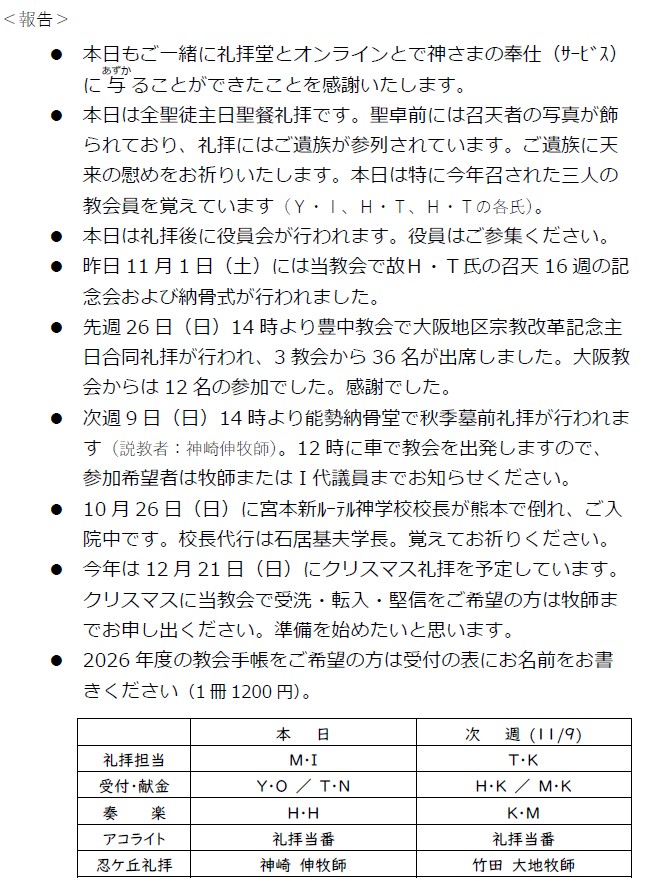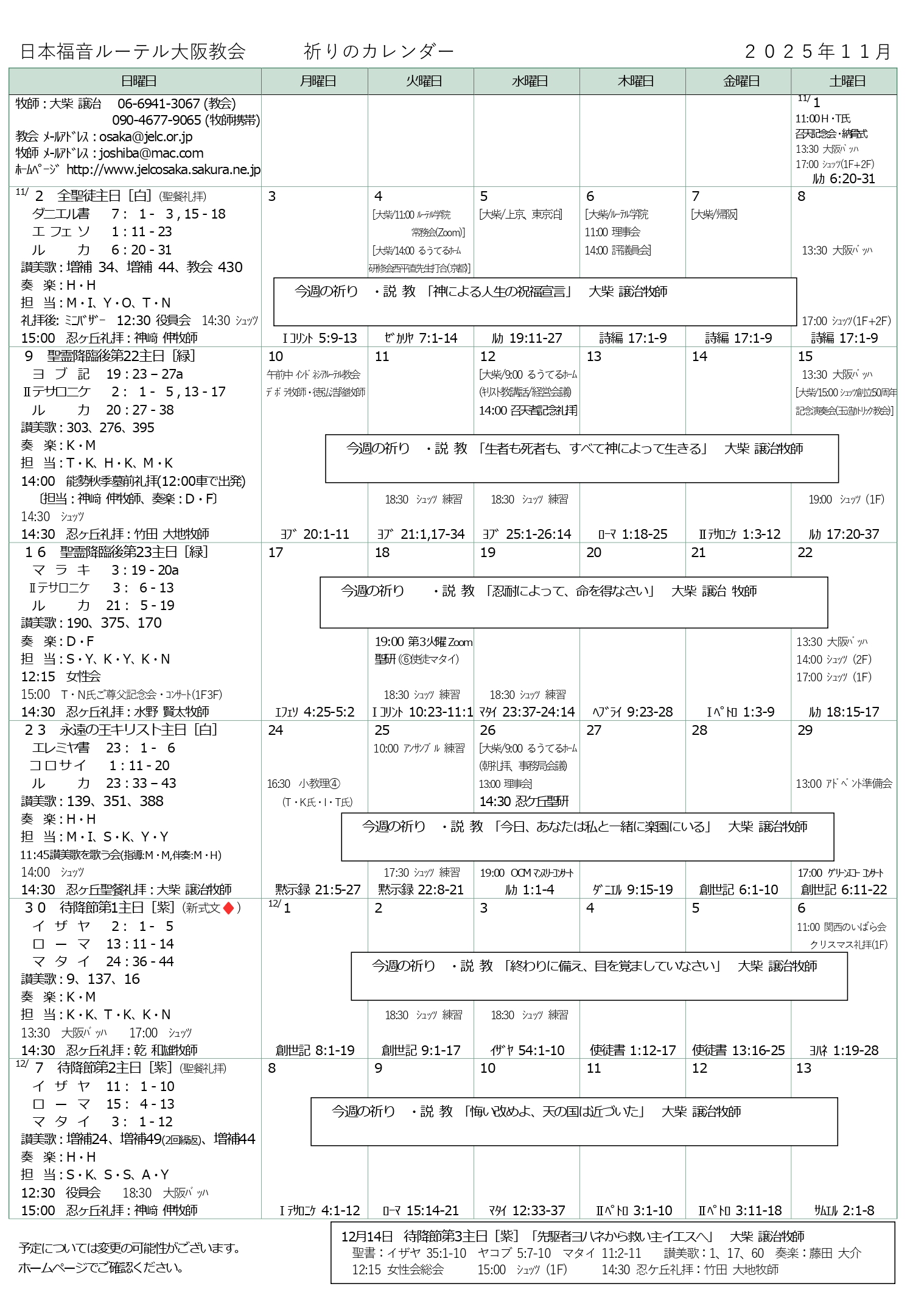 大阪教会からのお知らせ